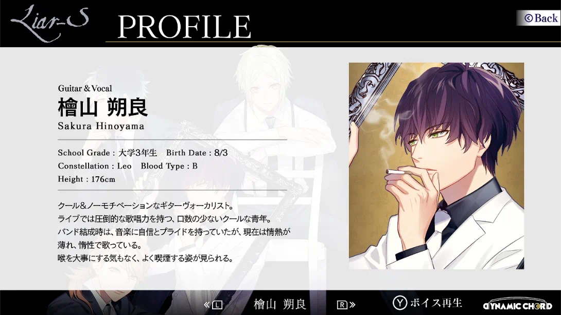 DYNAMIC CHORD feat.[rêve parfait] Remaster edition 是一款以乐队恋爱为主题的乙女向冒险游戏(ADV),移植自原版并新增内容。玩家将扮演乐队[rêve parfait]的支援角色,与四位性格迥异的成员展开互动与恋爱故事。