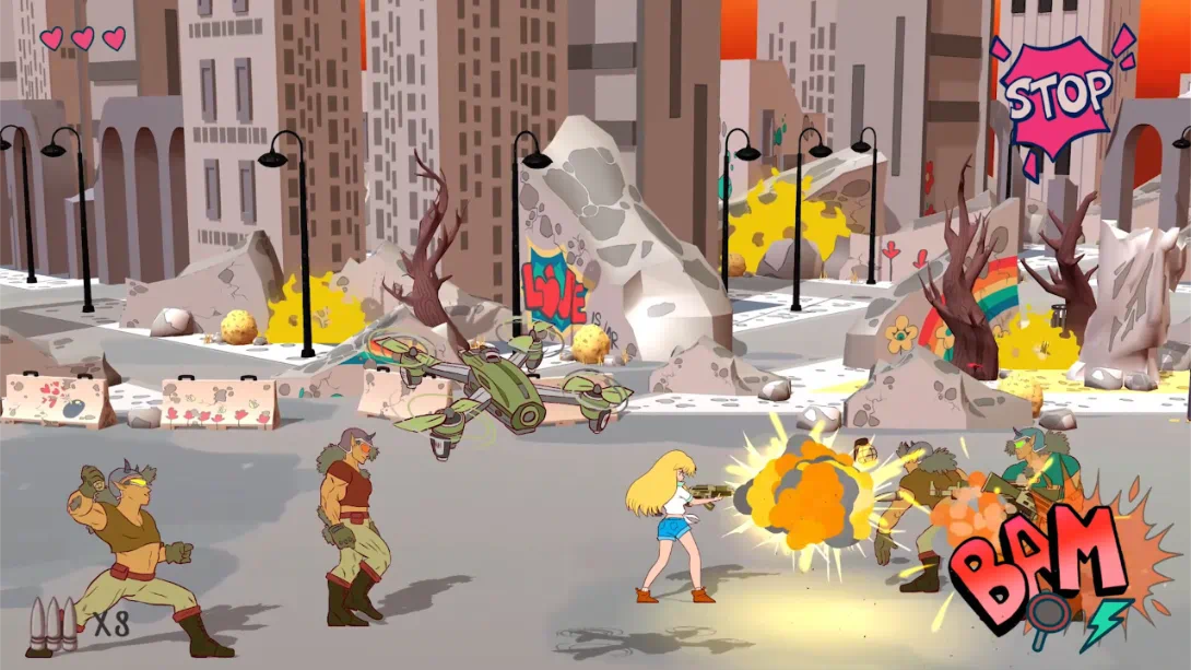 《V's Rage》是一款手绘风格的动作冒险游戏,灵感源自80-90年代经典街机游戏和动漫。玩家扮演被诅咒困在电子游戏中的母亲V,需用平底锅击败敌人,通过切换四种游戏风格(清版过关、射击、横版卷轴、跑酷射击)闯关。