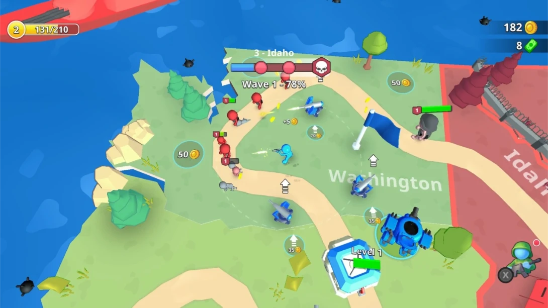 《Fight For America 》是一款融合塔防与动作射击的策略手游,玩家需扮演指挥官,通过建造防御塔、升级武器来抵御敌人进攻,最终解放全美各州。